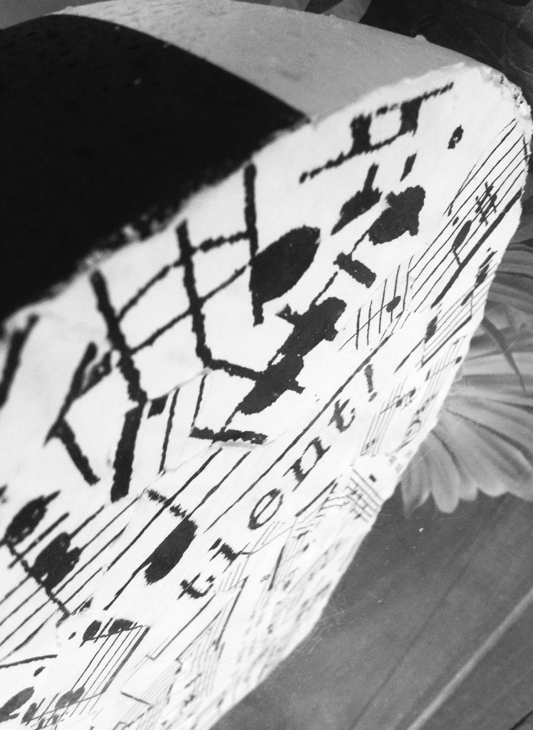 Et comme la musique classique occupe une place importante dans ma vie, j’ai placé une partition musicale derrière la tête (extrait de l’opéra Carmen, il va s’en dire). »